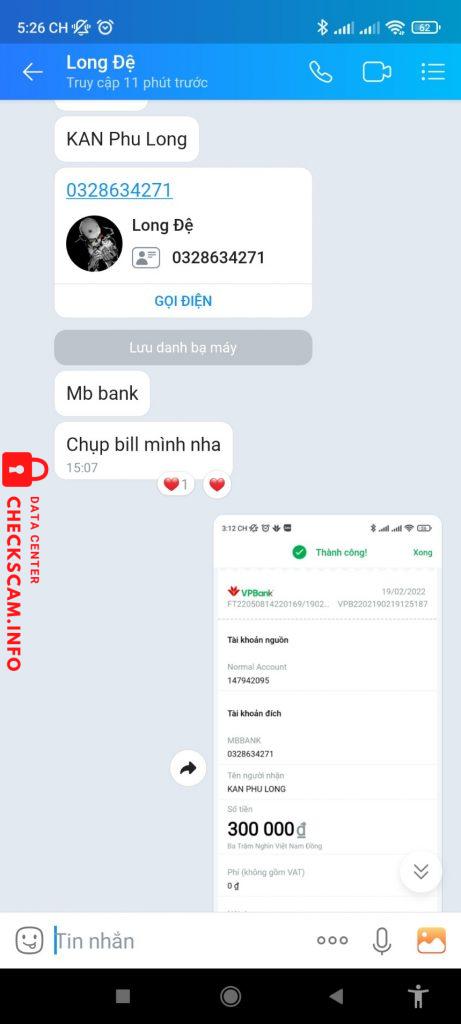 诈骗者警报: Kan Phu Long 已报告: November 16, 2024 诈骗者信息 全名: Kan Phu Long 电话号码: 0328634271 支付网关: MBbank 支付账户: 0328634271 类别: 市场诈骗 来源: Checkscam 证据文件 报告描述 Chuyển tiền nhưng không chuyển data 评论 您的评论 添加评论 暂无评论。成为第一个分享您与此诈骗者经历的人。