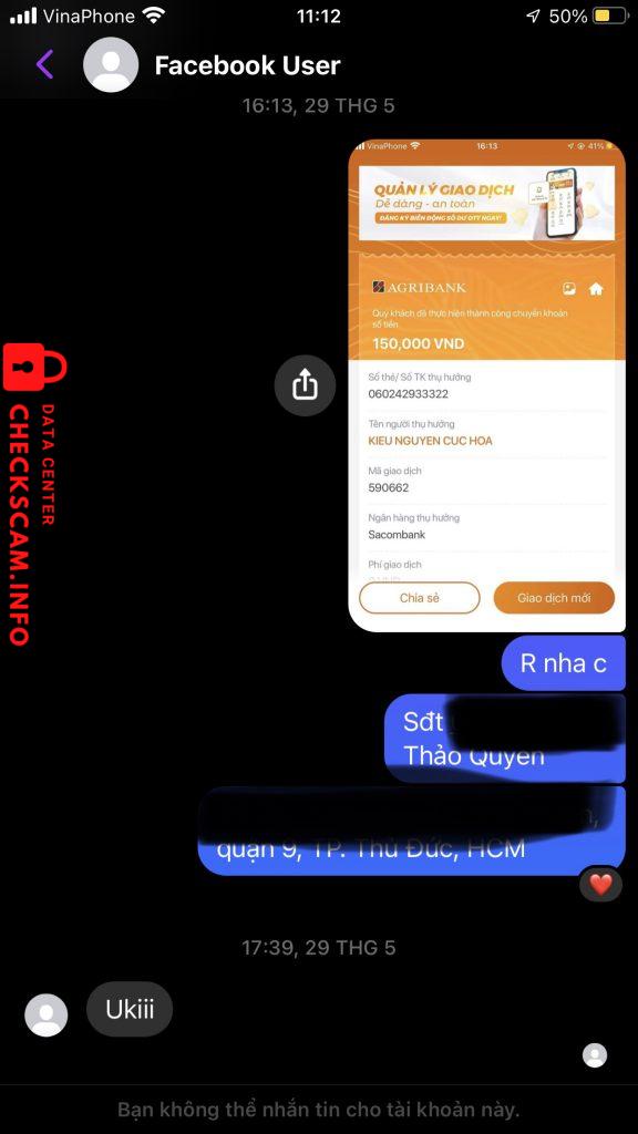 诈骗者警报: KIEU NGUYEN CUC HOA 已报告: November 16, 2024 诈骗者信息 全名: KIEU NGUYEN CUC HOA 支付网关: Sacombank 支付账户: 060242933322 类别: 市场诈骗 来源: Checkscam 证据文件 报告描述 Đăng bán hàng nhưng khi được chuyển tiền xong thì biến mất. 评论 您的评论 添加评论 暂无评论。成为第一个分享您与此诈骗者经历的人。