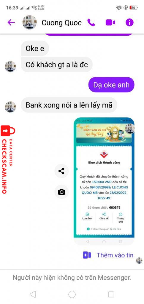 诈骗者警报: Lê Cường Quốc 已报告: November 16, 2024 诈骗者信息 全名: Lê Cường Quốc 社交媒体链接: https://www.facebook.com/100060303413019 支付网关: Mb bank 支付账户: 09408529999 类别: 市场诈骗 来源: Checkscam 证据文件 报告描述 Lê Cường Quốc lừa đảo 350k tiền mở khóa Facebook STK lừa đảo 09408529999 link FB lừa đảo https://www.facebook.com/100060303413019 评论 您的评论 添加评论 暂无评论。成为第一个分享您与此诈骗者经历的人。