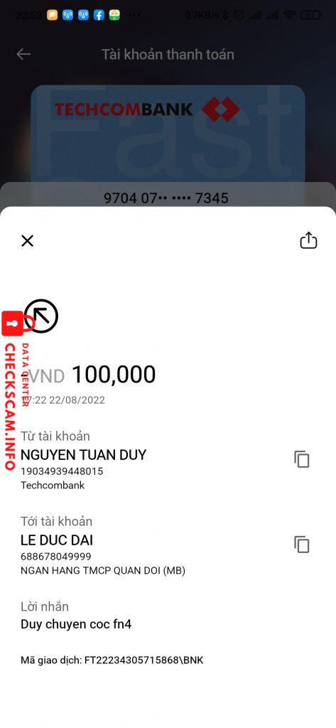 诈骗者警报: Le Duc dai 已报告: November 16, 2024 诈骗者信息 全名: Le Duc dai 支付网关: MB 支付账户: 688678049999 类别: 市场诈骗 来源: Checkscam 证据文件 报告描述 Sau khi cọc tiền tai nghe FN4 thì chặn. 评论 您的评论 添加评论 暂无评论。成为第一个分享您与此诈骗者经历的人。