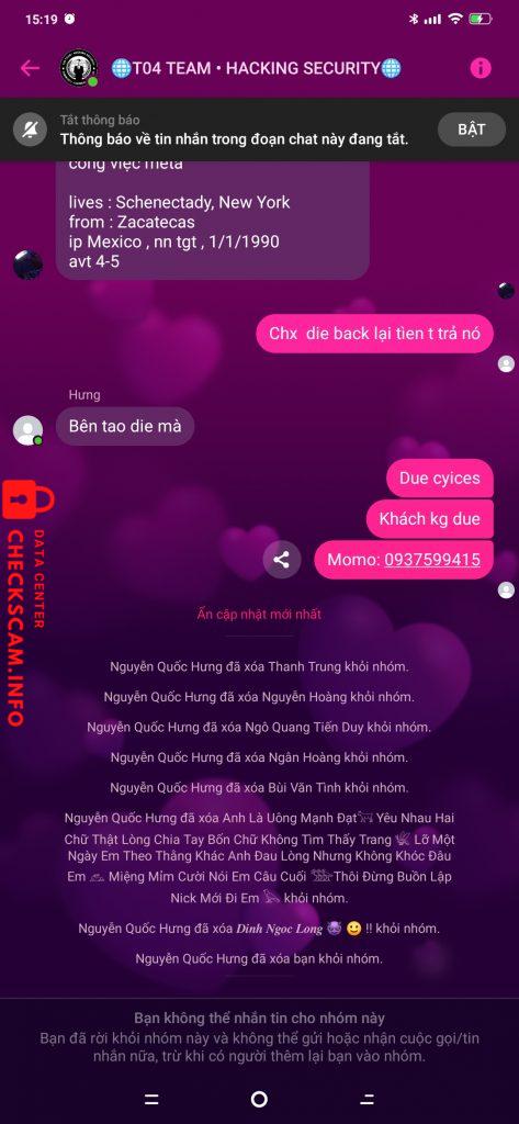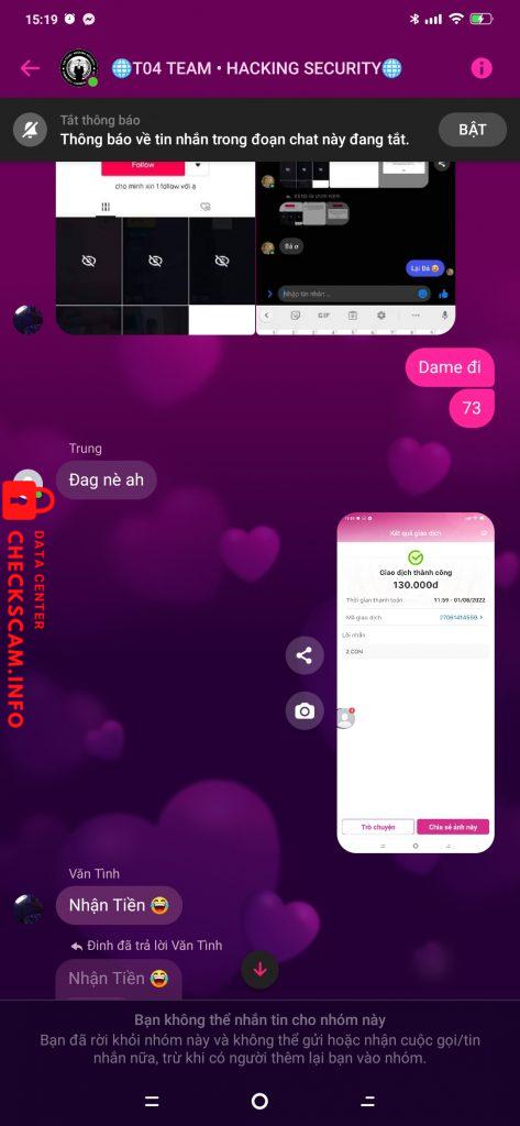 诈骗者警报: Lê Phạm Văn Tình 已报告: November 16, 2024 诈骗者信息 全名: Lê Phạm Văn Tình 电话号码: 0342140079 支付网关: 0342140079 支付账户: 0342140079 类别: 市场诈骗 来源: Checkscam 证据文件 报告描述 Scam dame acc Facebook xong kick khỏi box 评论 您的评论 添加评论 暂无评论。成为第一个分享您与此诈骗者经历的人。