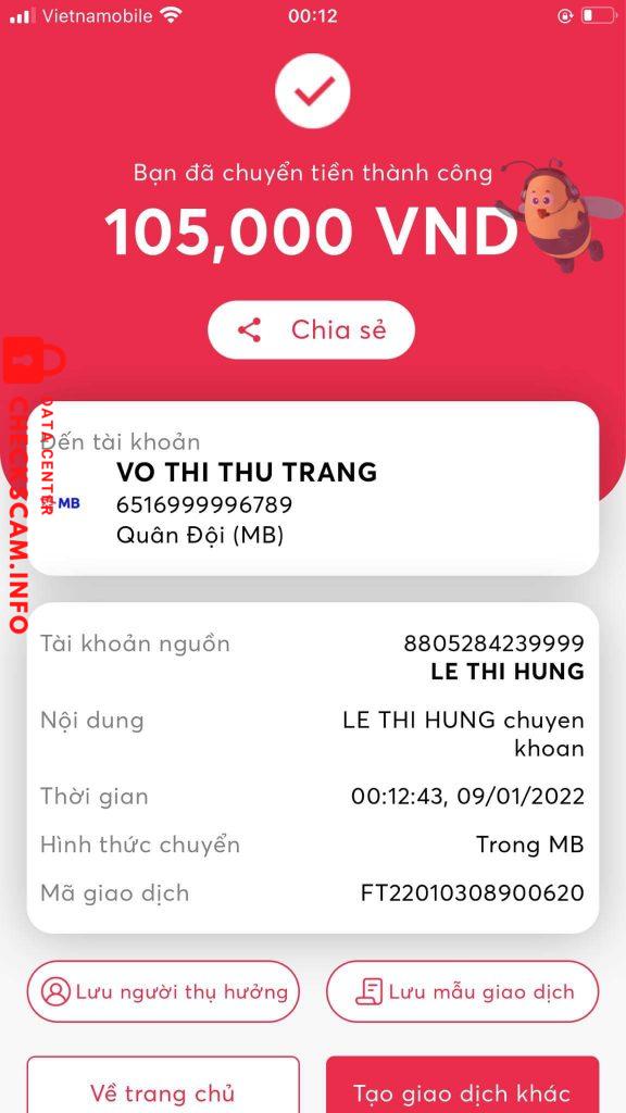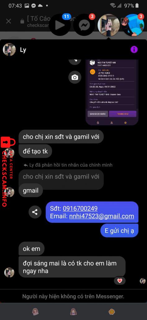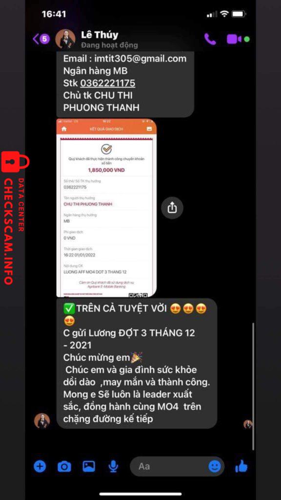 诈骗者警报: Lê Thị Hưng 已报告: November 16, 2024 诈骗者信息 全名: Lê Thị Hưng 支付网关: Mbbank 支付账户: 8805284239999 类别: 市场诈骗 来源: Checkscam 证据文件 报告描述 Lừa đảo bằng cách tuyển dụng cv có phí tạo tk vài chục k (cụ thể là cv khảo sát) và sau khi nạn nhân ck r, thì nó block liền, mng cẩn thận 评论 您的评论 添加评论 暂无评论。成为第一个分享您与此诈骗者经历的人。