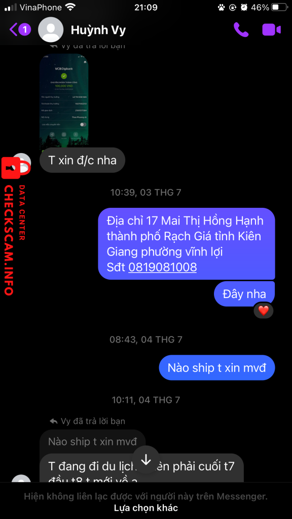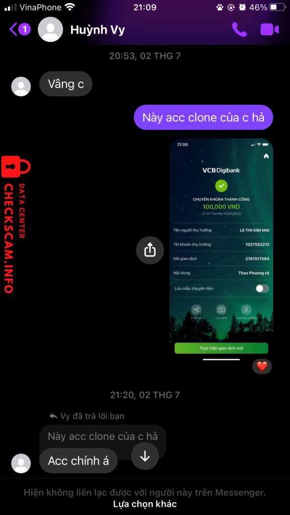 诈骗者警报: LÊ Thị Kim Mai 已报告: November 16, 2024 诈骗者信息 全名: LÊ Thị Kim Mai 支付网关: VCB 支付账户: 1027552212 类别: 市场诈骗 来源: Checkscam 证据文件 报告描述 评论 您的评论 添加评论 暂无评论。成为第一个分享您与此诈骗者经历的人。