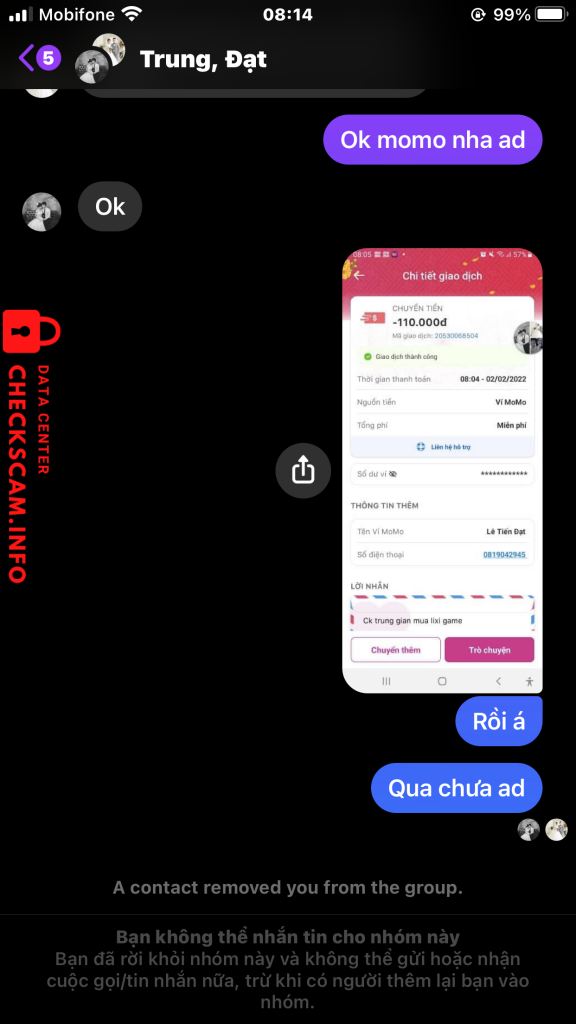 诈骗者警报: Le Tien Dat 已报告: November 16, 2024 诈骗者信息 全名: Le Tien Dat 电话号码: 0819042945 支付网关: BIDV 支付账户: 39810001018014 类别: 市场诈骗 来源: Checkscam 证据文件 报告描述 Lừa đảo trung gian 评论 您的评论 添加评论 暂无评论。成为第一个分享您与此诈骗者经历的人。