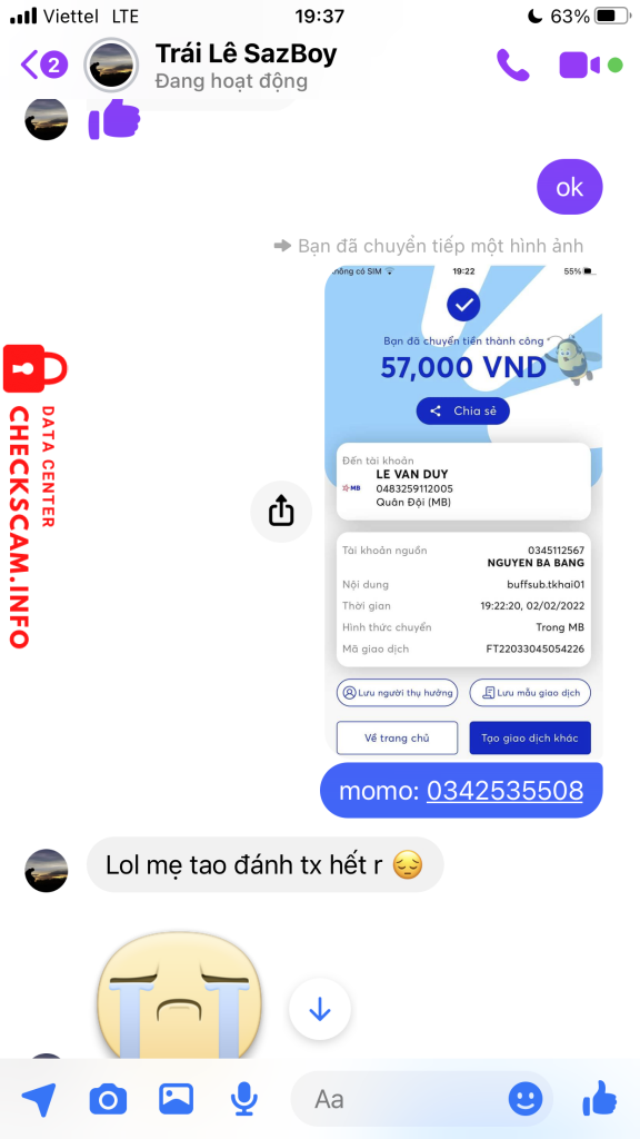 诈骗者警报: Lê Văn Duy 已报告: November 16, 2024 诈骗者信息 全名: Lê Văn Duy 电话号码: 0373288626 支付网关: 0483259112005 支付账户: 0483259112005 类别: 市场诈骗 来源: Checkscam 证据文件 报告描述 Scam dt 评论 您的评论 添加评论 暂无评论。成为第一个分享您与此诈骗者经历的人。