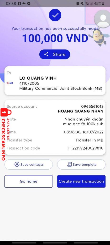 诈骗者警报: LO QUANG VINh 已报告: November 16, 2024 诈骗者信息 全名: LO QUANG VINh 支付网关: MB BANK 支付账户: 411072005 类别: 市场诈骗 来源: Checkscam 证据文件 报告描述 Nó bán acc cho tui xong lừa mất 评论 您的评论 添加评论 暂无评论。成为第一个分享您与此诈骗者经历的人。