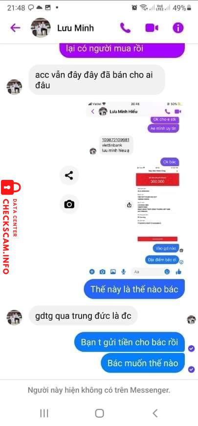 诈骗者警报: Lưu minh hiếu 已报告: November 16, 2024 诈骗者信息 全名: Lưu minh hiếu 支付网关: Viettinbank 支付账户: 109872109981 类别: 市场诈骗 来源: Checkscam 证据文件 报告描述 Lừa đảo mua bán acc trong game gia tộc huyền thoại 评论 您的评论 添加评论 暂无评论。成为第一个分享您与此诈骗者经历的人。