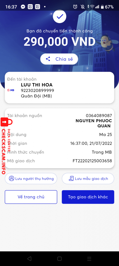 诈骗者警报: LUU THI HOA 已报告: November 16, 2024 诈骗者信息 全名: LUU THI HOA 支付网关: Mb bank 支付账户: 9223020899999 类别: 市场诈骗 来源: Checkscam 证据文件 报告描述 Scam bán acc free fire 评论 您的评论 添加评论 暂无评论。成为第一个分享您与此诈骗者经历的人。