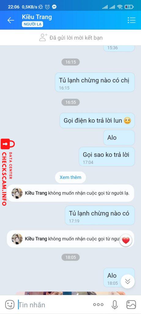 Mình tên Trần Khôi Nguyên có đặt hàng trên Shopee 1 cái tủ lạnh giá 2tr9, nó kêu mình chuyển tiền cho nó 900k trước để nó giao kho, ai ngờ giao cho nó xong thì nó biệt tâm biệt tích gọi điện thì thuê bao, nhắn tin zalo không trả lời. Xong lên kiểm tra trên Shopee thì xoá nó hiện lên đã bị khoá hoặc xoá.
