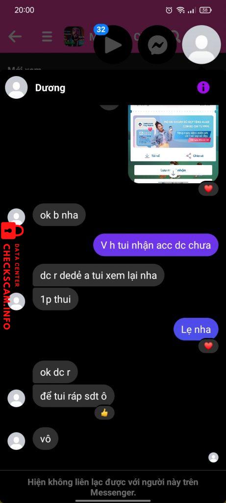 诈骗者警报: LY THE TRUC 已报告: November 16, 2024 诈骗者信息 全名: LY THE TRUC 支付网关: BIDV 支付账户: 60110001582361 类别: 市场诈骗 来源: Checkscam 证据文件 报告描述 Mua acc ff xong bank cho nó rồi nó block 评论 您的评论 添加评论 暂无评论。成为第一个分享您与此诈骗者经历的人。