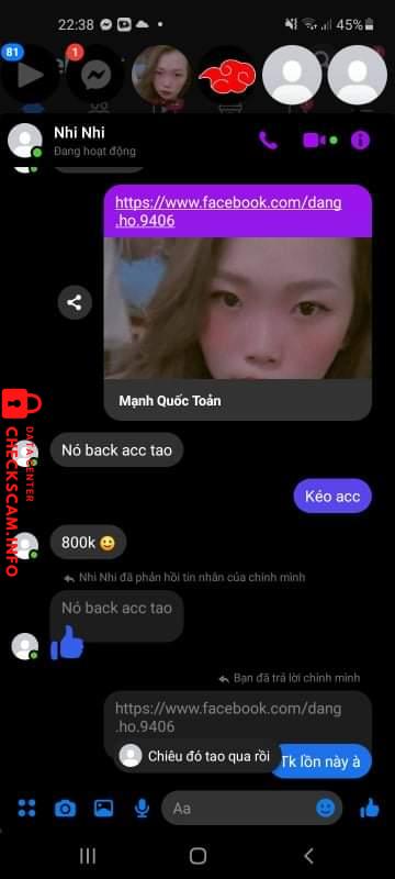 Chuyện là tui thuê ông này kéo acc, ông này nói ae nên kéo rẻ cho t, kêu t đợi hơn 15 ngày không có động tĩnh gì, nhưng có 1 ngày ông đó nói là thằng bạn tui scam, nhưng ông này die acc và xin trú nhưng lại cài form vô acc thằng bạn t nó thấy vậy nên ngắt form và kick nó ra acc nó lại nói thằng bạn t scam. Tới khi t hỏi động tĩnh vụ acc 282 thì ông này im không rep. T spam xong lại chửi t nói nó uy tín lắm xong bạn t phốt thấy nhiều người bảo nó scam nên t sợ nên t nói hủy kèo gd nói nó bank 2 3 ngày vẫn không động tĩnh t hối là mai bank không là phốt nó nói ok xong qua ngày sau lại lặng im mà đi.