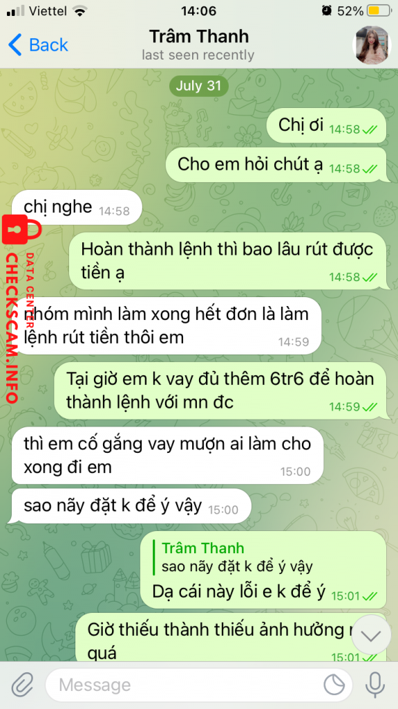 Ban đầu họ cho làm nhiệm vụ tải app đăng kí xong bắt nạp tiền, số tiền càng ngày càng lớn lên. sai một lệnh bắt nạp bù.