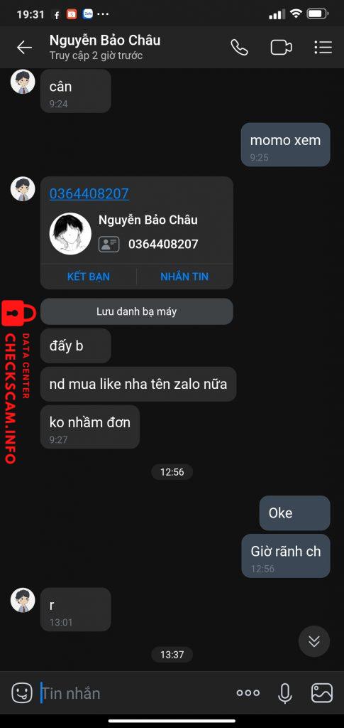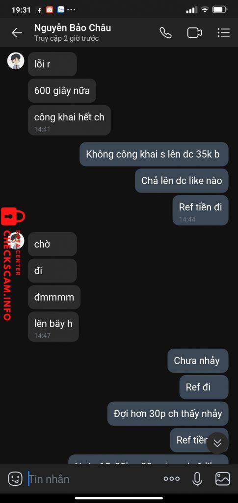 诈骗者警报: Nguyễn Bảo Châu 已报告: November 16, 2024 诈骗者信息 全名: Nguyễn Bảo Châu 电话号码: 0364408207 支付网关: Momo 支付账户: 0364408207 类别: 市场诈骗 来源: Checkscam 证据文件 报告描述 Mua like tây 50k like giá 35k kêu là lên ngay nhưng đợi hơn 1 2h không lên kêu ref tiền thì không ref đợi gần 5 6 tiếng không hồi âm mong admin duyệt để tránh nhiều người bị nó scam 评论 您的评论 添加评论 暂无评论。成为第一个分享您与此诈骗者经历的人。