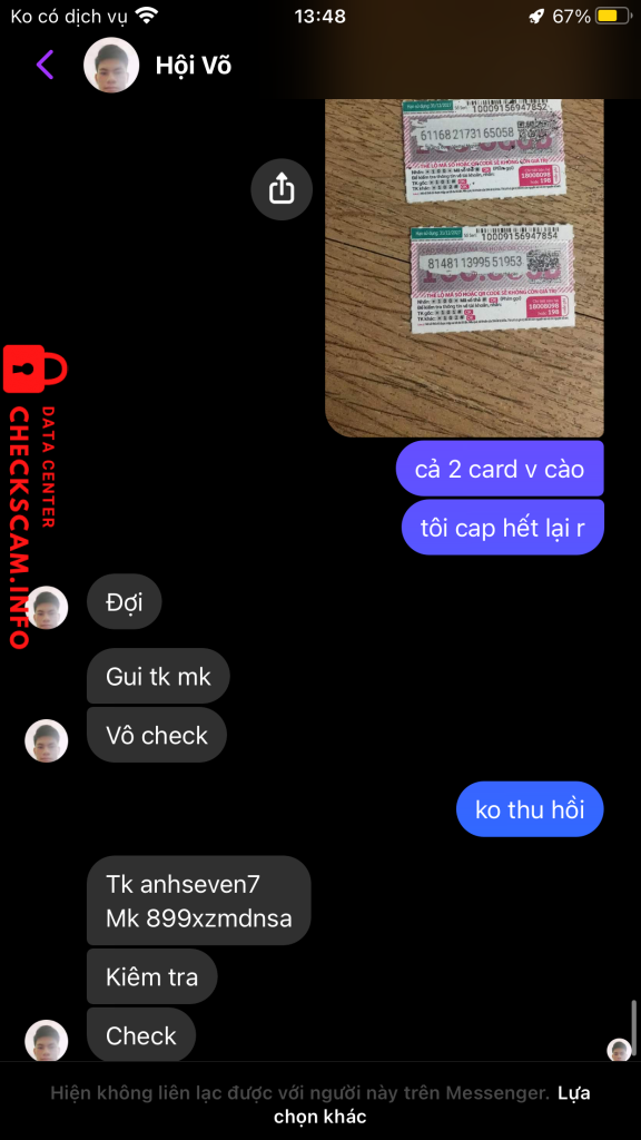 诈骗者警报: Nguyen Duc Anh 已报告: November 16, 2024 诈骗者信息 全名: Nguyen Duc Anh 支付网关: NH Wooribank 支付账户: 100200183622 类别: 市场诈骗 来源: Checkscam 证据文件 报告描述 Scam Lừa còn fake Võ Hội đi lừa tiền người ta đưa acc đểu 评论 您的评论 添加评论 暂无评论。成为第一个分享您与此诈骗者经历的人。
