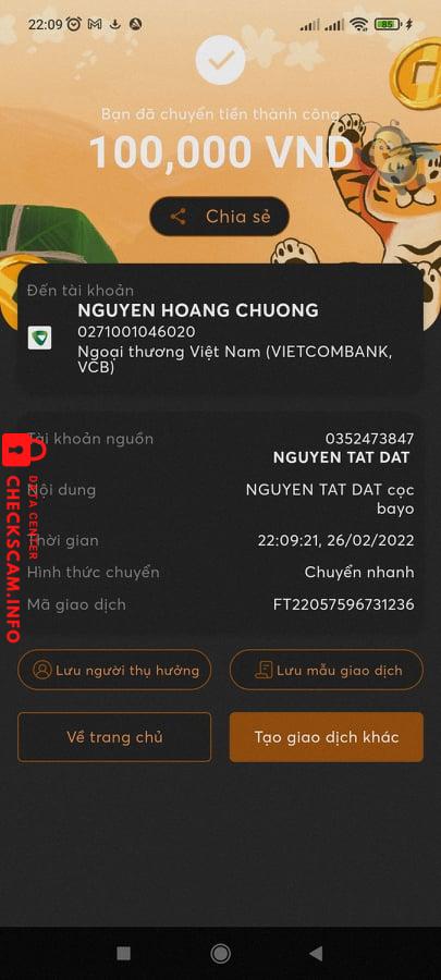 诈骗者警报: Nguyen Hoang Chuong 已报告: November 16, 2024 诈骗者信息 全名: Nguyen Hoang Chuong 支付网关: Vietcombank 支付账户: 0271001046020 类别: 市场诈骗 来源: Checkscam 证据文件 报告描述 chuyên gia đi scam tiền cọc đồ 评论 您的评论 添加评论 暂无评论。成为第一个分享您与此诈骗者经历的人。