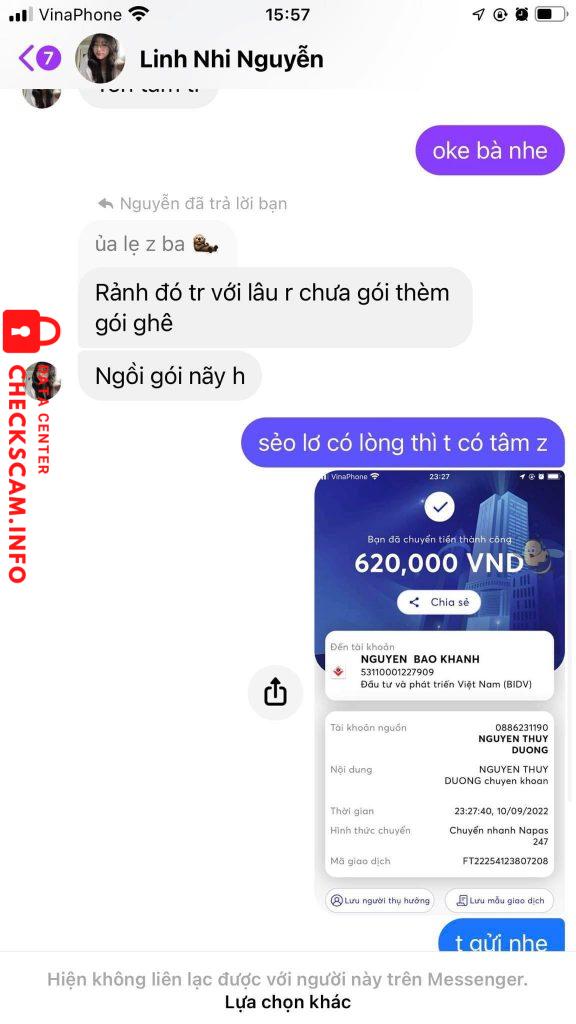 诈骗者警报: NGUYEN KHANH BAO 已报告: November 16, 2024 诈骗者信息 全名: NGUYEN KHANH BAO 支付网关: BIDV 支付账户: 53110001227909 类别: 市场诈骗 来源: Checkscam 证据文件 报告描述 评论 您的评论 添加评论 暂无评论。成为第一个分享您与此诈骗者经历的人。