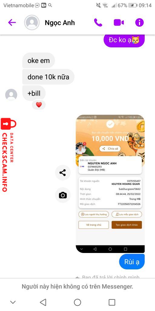 诈骗者警报: Nguyen Ngoc Anh 已报告: November 16, 2024 诈骗者信息 全名: Nguyen Ngoc Anh 电话号码: 0374665293 支付网关: Mbank 支付账户: 0374665293 类别: 市场诈骗 来源: Checkscam 证据文件 报告描述 Em mua 5k follow thì bị anh ý lừa đảo mất tiền ạ 评论 您的评论 添加评论 暂无评论。成为第一个分享您与此诈骗者经历的人。