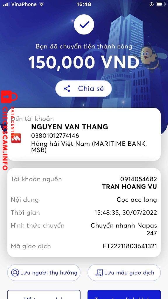 诈骗者警报: Nguyễn Thành Long 已报告: November 16, 2024 诈骗者信息 全名: Nguyễn Thành Long 电话号码: 0828267686 支付网关: MOMO 支付账户: 0828267686 类别: 市场诈骗 来源: Checkscam 证据文件 报告描述 Scam tiển cọc acc 评论 您的评论 添加评论 暂无评论。成为第一个分享您与此诈骗者经历的人。