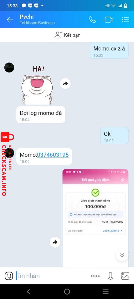诈骗者警报: Nguyễn Thị Càng (Pvchi) 已报告: November 16, 2024 诈骗者信息 全名: Nguyễn Thị Càng (Pvchi) 电话号码: 0374603195 支付网关: Momo 支付账户: 0374603195 类别: 市场诈骗 来源: Checkscam 证据文件 报告描述 Scam 100k tiền mua mail cổ 评论 您的评论 添加评论 暂无评论。成为第一个分享您与此诈骗者经历的人。