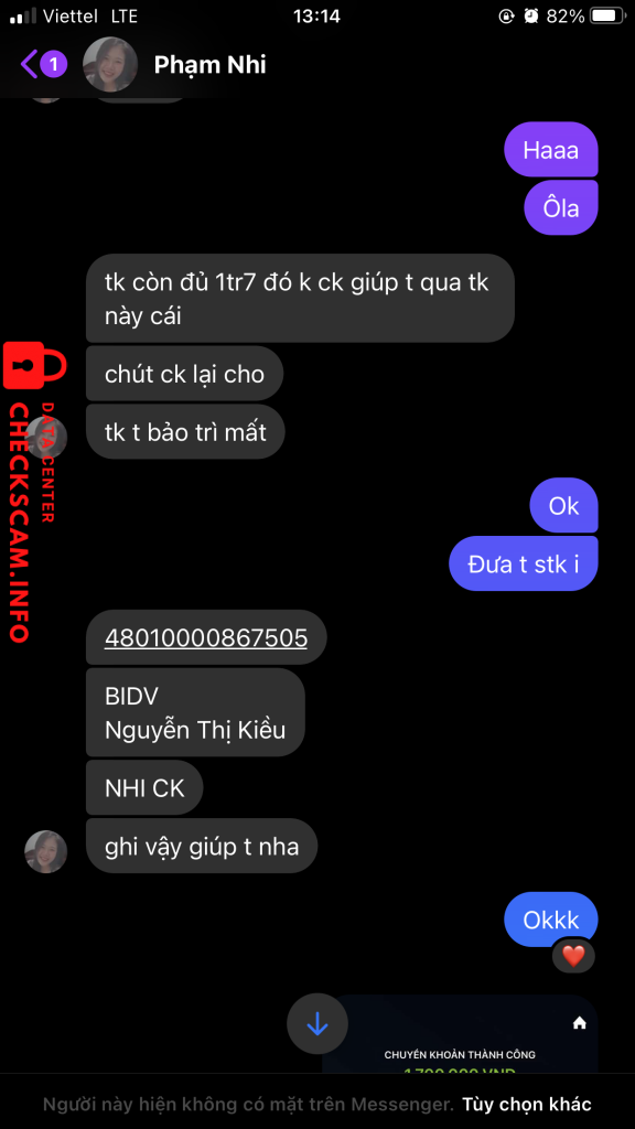 诈骗者警报: Nguyen Thi Kieu 已报告: November 16, 2024 诈骗者信息 全名: Nguyen Thi Kieu 支付网关: BIDV 支付账户: 48010000867505 类别: 市场诈骗 来源: Checkscam 证据文件 报告描述 Hacker mạo danh 评论 您的评论 添加评论 暂无评论。成为第一个分享您与此诈骗者经历的人。