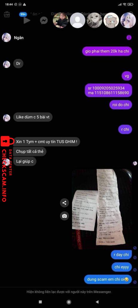 诈骗者警报: Nguyễn Thị Kim Ngân 已报告: November 16, 2024 诈骗者信息 全名: Nguyễn Thị Kim Ngân 电话号码: 0926586284 支付网关: 0926586284 支付账户: 0926586284 类别: 市场诈骗 来源: Checkscam 证据文件 报告描述 Scam 400 评论 您的评论 添加评论 暂无评论。成为第一个分享您与此诈骗者经历的人。