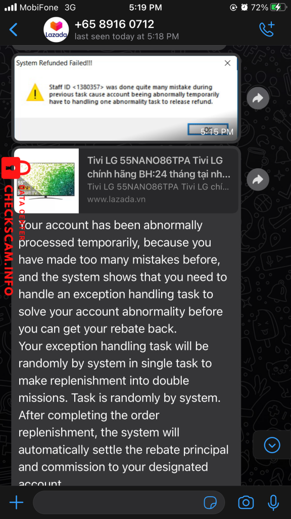 诈骗者警报: Nguyen Thi Kim Phung 已报告: November 16, 2024 诈骗者信息 全名: Nguyen Thi Kim Phung 支付网关: MB 支付账户: 5900147357930 类别: 市场诈骗 来源: Checkscam 证据文件 报告描述 Giả tuyển CTV sau đó lừa tiền 评论 您的评论 添加评论 暂无评论。成为第一个分享您与此诈骗者经历的人。