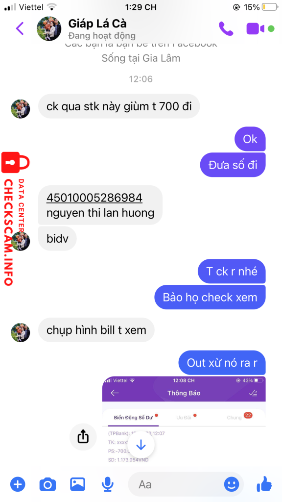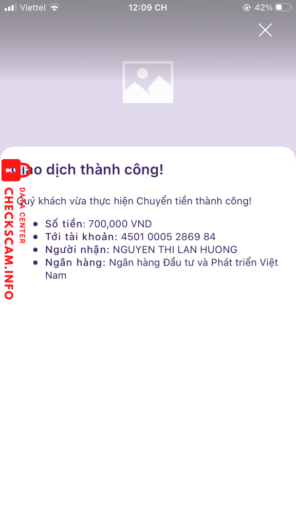 诈骗者警报: Nguyen Thi Lan Huong 已报告: November 16, 2024 诈骗者信息 全名: Nguyen Thi Lan Huong 支付网关: BIDV 支付账户: 45010005286984 类别: 市场诈骗 来源: Checkscam 证据文件 报告描述 Lừa đảo 评论 您的评论 添加评论 暂无评论。成为第一个分享您与此诈骗者经历的人。