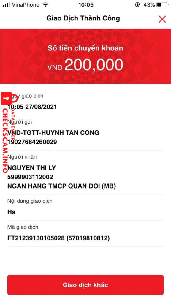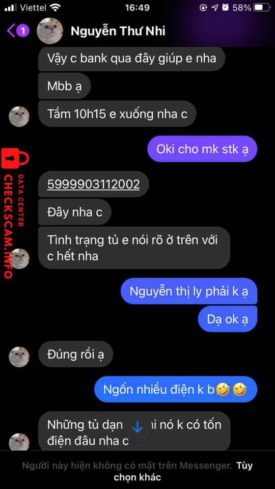 诈骗者警报: NGUYEN THI LY 已报告: November 16, 2024 诈骗者信息 全名: NGUYEN THI LY 支付网关: MB BANK 支付账户: 5999903112002 类别: 市场诈骗 来源: Checkscam 证据文件 报告描述 LỪA ĐẢO SINH VIÊN MUA ĐỒ GIA DỤNG CŨ Ở CÁC NHÓM THANH LÍ HÀ NỘI 评论 您的评论 添加评论 暂无评论。成为第一个分享您与此诈骗者经历的人。