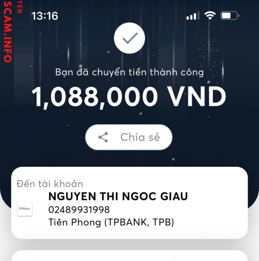 诈骗者警报: Nguyen thi ngoc giau 已报告: November 16, 2024 诈骗者信息 全名: Nguyen thi ngoc giau 支付网关: Tp bank 支付账户: 02489931998 类别: 市场诈骗 来源: Checkscam 证据文件 报告描述 Lừa đảo 1tr1 评论 您的评论 添加评论 暂无评论。成为第一个分享您与此诈骗者经历的人。