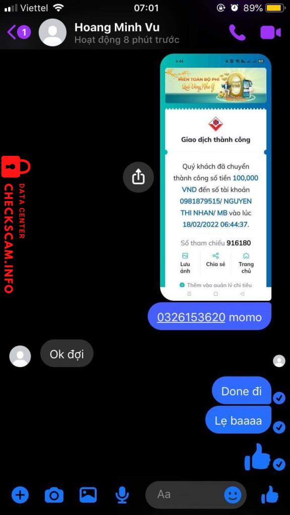 诈骗者警报: Nguyen Thi Nhan 已报告: November 16, 2024 诈骗者信息 全名: Nguyen Thi Nhan 电话号码: 0981879515 支付网关: MB BANK 支付账户: 0981879515 类别: 市场诈骗 来源: Checkscam 证据文件 报告描述 Lừa đảo đổi tiền bank qua momo , ck xong ko rep nửa ngày trời 评论 您的评论 添加评论 暂无评论。成为第一个分享您与此诈骗者经历的人。