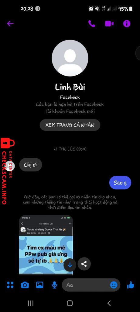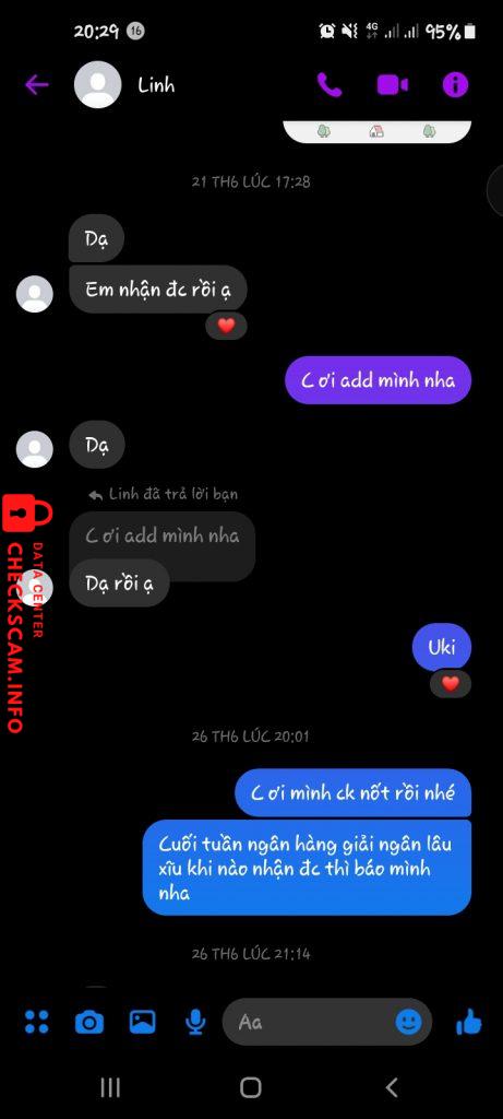 诈骗者警报: Nguyễn Thị Phương Thảo 已报告: November 16, 2024 诈骗者信息 全名: Nguyễn Thị Phương Thảo 支付网关: MB 支付账户: 0795935341 类别: 市场诈骗 来源: Checkscam 证据文件 报告描述 Scam tiền 评论 您的评论 添加评论 暂无评论。成为第一个分享您与此诈骗者经历的人。
