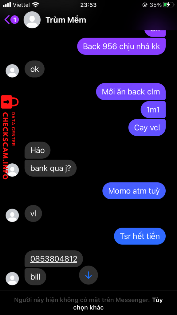 诈骗者警报: Nguyễn Thị Thanh Nhàn 已报告: November 16, 2024 诈骗者信息 全名: Nguyễn Thị Thanh Nhàn 电话号码: 0853804812 支付网关: Momo 支付账户: 0853804812 类别: 市场诈骗 来源: Checkscam 证据文件 报告描述 Lừa đảo đói khát thèm 20k 评论 您的评论 添加评论 暂无评论。成为第一个分享您与此诈骗者经历的人。