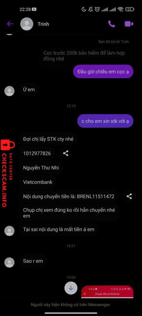 诈骗者警报: Nguyễn Thư Nhi 已报告: November 16, 2024 诈骗者信息 全名: Nguyễn Thư Nhi 支付网关: Vietcombank 支付账户: 1012977826 类别: 市场诈骗 来源: Checkscam 证据文件 报告描述 Giới thiệu công việc láp ráp bút xong bắt cọc các thứ, tới lúc mình biết scam rồi thì block, mình muốn tố cáo để mn sau không dính nữa. 评论 您的评论 添加评论 暂无评论。成为第一个分享您与此诈骗者经历的人。