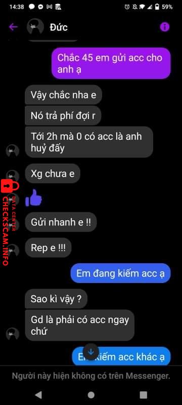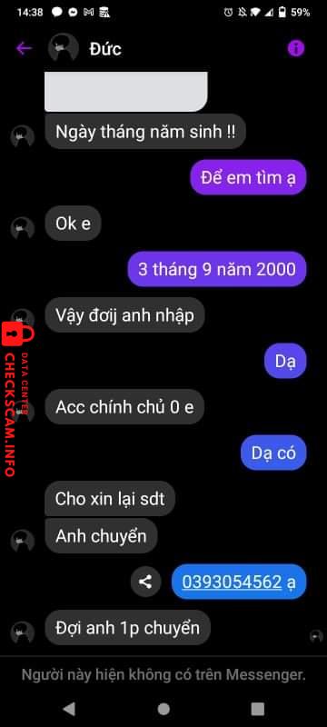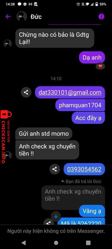 诈骗者警报: Nguyễn Tiến Đức 已报告: November 16, 2024 诈骗者信息 全名: Nguyễn Tiến Đức 电话号码: 0786841929 支付网关: Mb bank 类别: 市场诈骗 来源: Checkscam 证据文件 报告描述 Thằng cho này scam acc của e mong admin giúp 评论 您的评论 添加评论 暂无评论。成为第一个分享您与此诈骗者经历的人。
