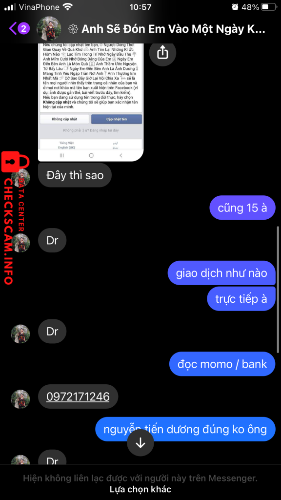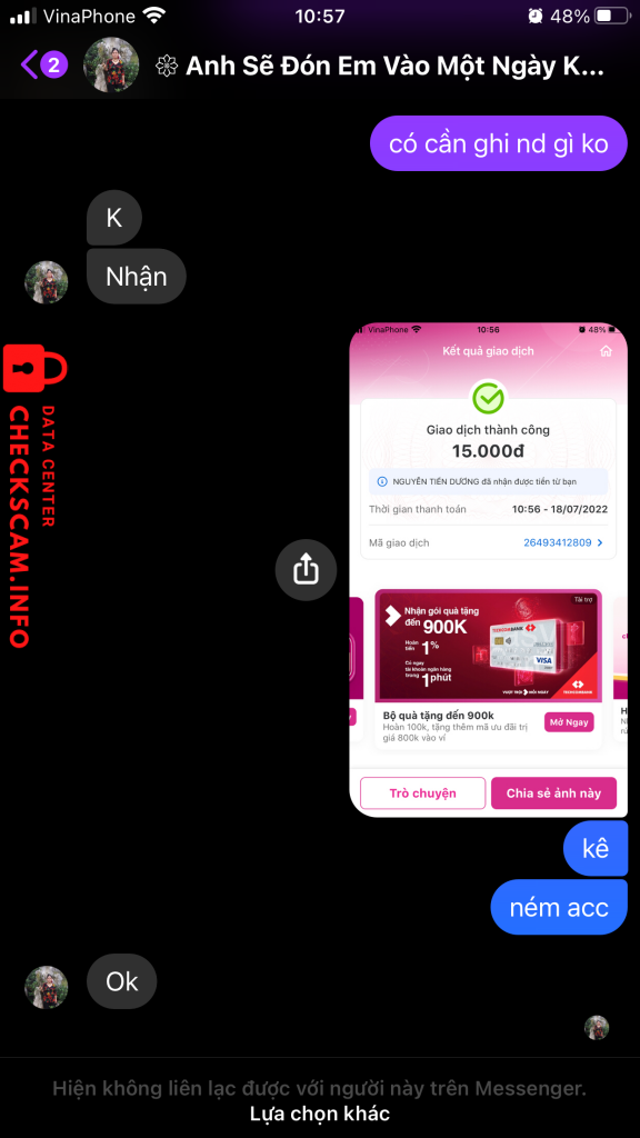 诈骗者警报: Nguyễn Tiến Dương 已报告: November 16, 2024 诈骗者信息 全名: Nguyễn Tiến Dương 电话号码: 0972171246 支付网关: MOMO 支付账户: 0972171246 类别: 市场诈骗 来源: Checkscam 证据文件 报告描述 Scam 15k acc tên dài 评论 您的评论 添加评论 暂无评论。成为第一个分享您与此诈骗者经历的人。