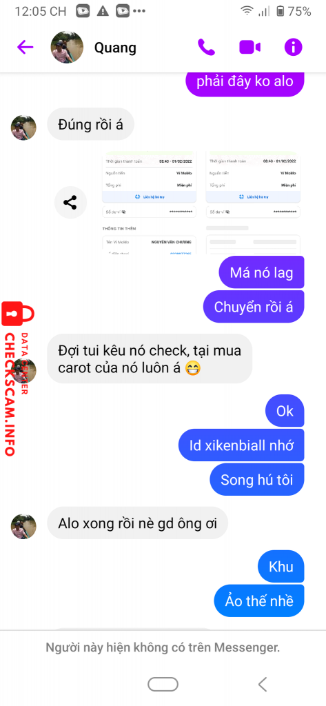 诈骗者警报: Nguyễn Văn Chương 已报告: November 16, 2024 诈骗者信息 全名: Nguyễn Văn Chương 电话号码: 0328977265 支付网关: Momo 支付账户: 03287977265 类别: 市场诈骗 来源: Checkscam 证据文件 报告描述 Lừa đảo 1 triệu VNĐ Momo khi bán vật phẩm game NRO Info kẻ lừa đảo: Nguyễn Văn Chương Sđt: 0328977265 评论 您的评论 添加评论 暂无评论。成为第一个分享您与此诈骗者经历的人。