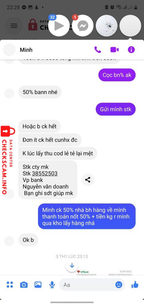 诈骗者警报: Nguyễn Văn Doanh 已报告: November 16, 2024 诈骗者信息 全名: Nguyễn Văn Doanh 支付网关: Vp bank 支付账户: 38552503 类别: 市场诈骗 来源: Checkscam 证据文件 报告描述 Lừa đảo tiền cọc, r mất tích 评论 您的评论 添加评论 暂无评论。成为第一个分享您与此诈骗者经历的人。