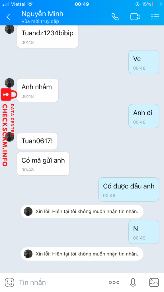 诈骗者警报: Nguyen van minh 已报告: November 16, 2024 诈骗者信息 全名: Nguyen van minh 电话号码: 0868149703 支付网关: Mb bank 支付账户: 0868149703 类别: 市场诈骗 来源: Checkscam 证据文件 报告描述 Lừa lấy lại acc fb giúp 评论 您的评论 添加评论 暂无评论。成为第一个分享您与此诈骗者经历的人。
