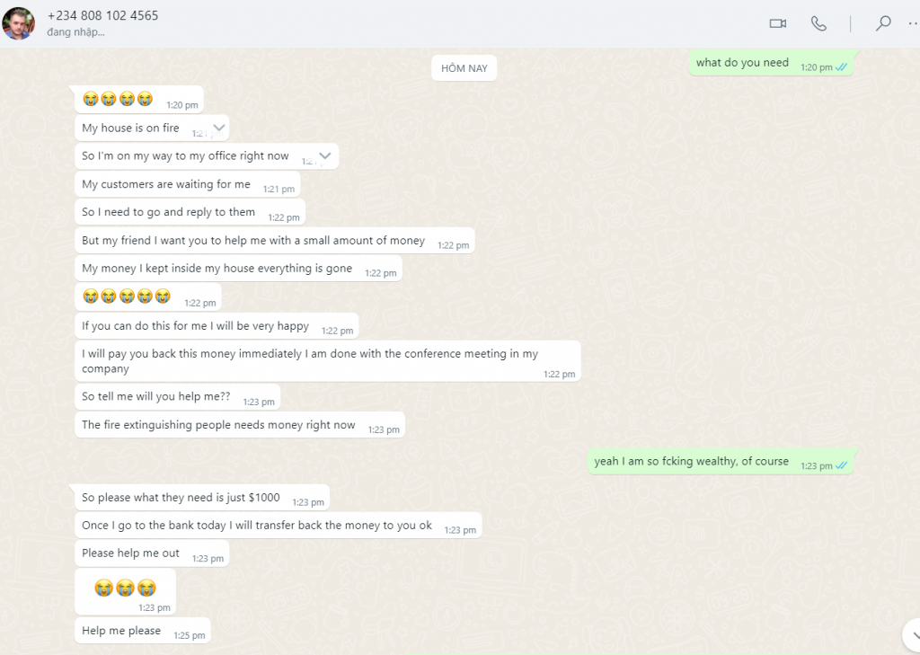 诈骗者警报: NGUYEN VAN TUAN 已报告: November 16, 2024 诈骗者信息 全名: NGUYEN VAN TUAN 支付网关: HDBANK 支付账户: 012704070006272 类别: 市场诈骗 来源: Checkscam 证据文件 报告描述 giả dạng nước ngoài, nhờ chuyển tiền cho nó 评论 您的评论 添加评论 暂无评论。成为第一个分享您与此诈骗者经历的人。