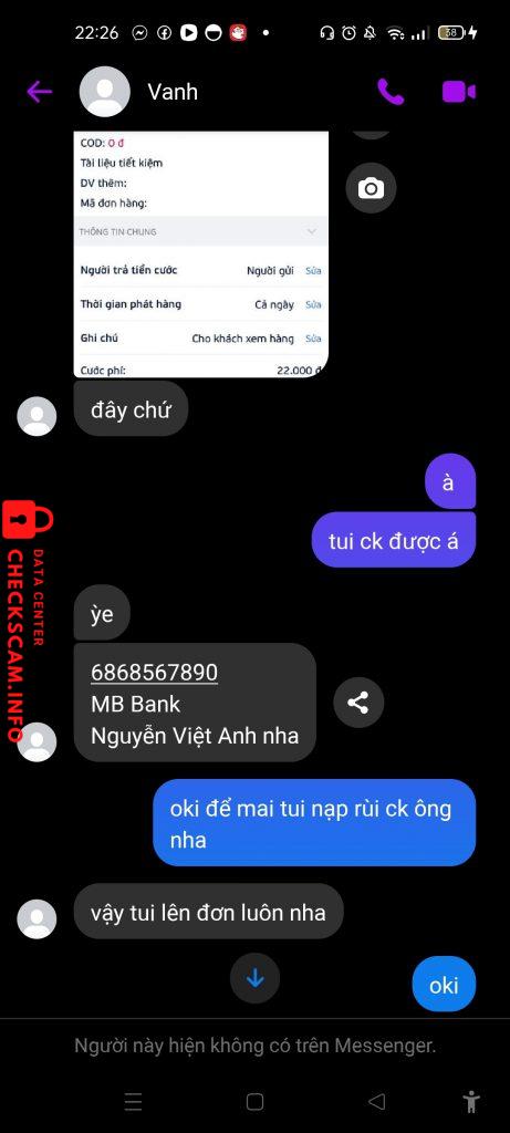 诈骗者警报: NGUYEN VIET ANH 已报告: November 16, 2024 诈骗者信息 全名: NGUYEN VIET ANH 电话号码: 0982828156 支付网关: MB Bank 支付账户: 6868567890 类别: 市场诈骗 来源: Checkscam 证据文件 报告描述 scam 评论 您的评论 添加评论 暂无评论。成为第一个分享您与此诈骗者经历的人。