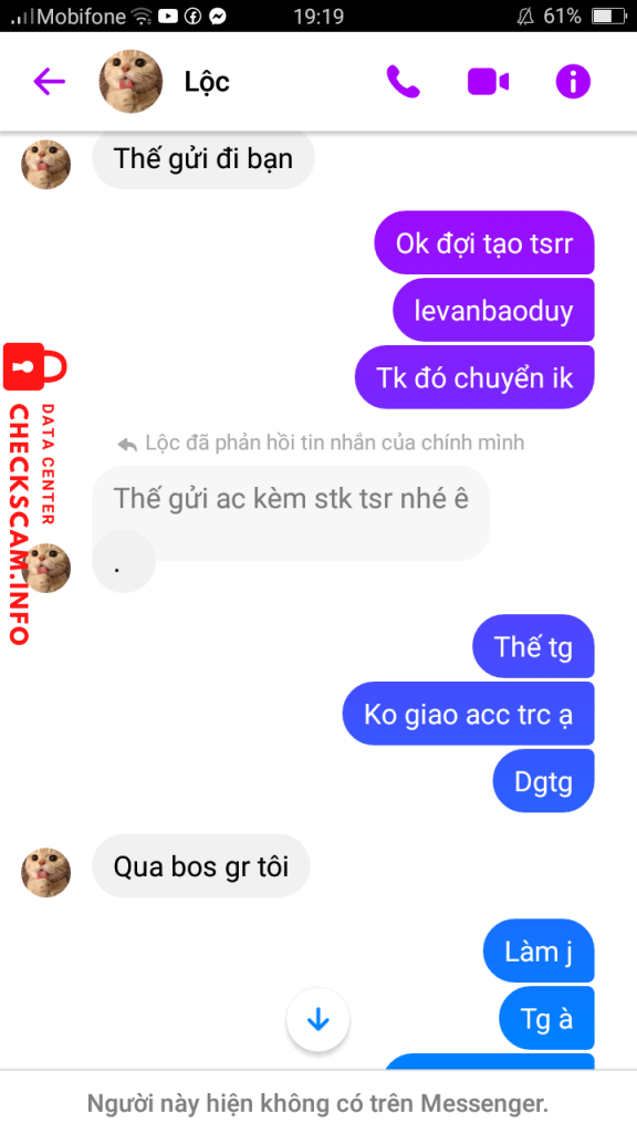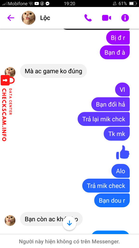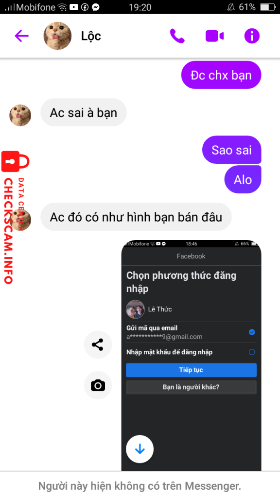诈骗者警报: Phạm Quốc Tuyên 已报告: November 16, 2024 诈骗者信息 全名: Phạm Quốc Tuyên 电话号码: 0334574683 社交媒体链接: https://www.facebook.com/profile.php?id=100066508856517 支付网关: Momo 支付账户: 0334574683 类别: 市场诈骗 来源: Checkscam 证据文件 报告描述 Link fb : https://www.facebook.com/profile.php?id=100066508856517 Gl ac phối hợp vs admin giả lừa ac xg chặn 评论 您的评论 添加评论 暂无评论。成为第一个分享您与此诈骗者经历的人。
