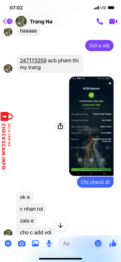 诈骗者警报: Phạm thị Mỹ trang 已报告: November 16, 2024 诈骗者信息 全名: Phạm thị Mỹ trang 支付网关: Acb 支付账户: 247173259 类别: 市场诈骗 来源: Checkscam 证据文件 报告描述 Lừa đảo 评论 您的评论 添加评论 暂无评论。成为第一个分享您与此诈骗者经历的人。