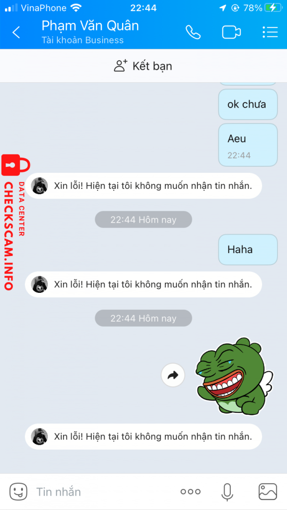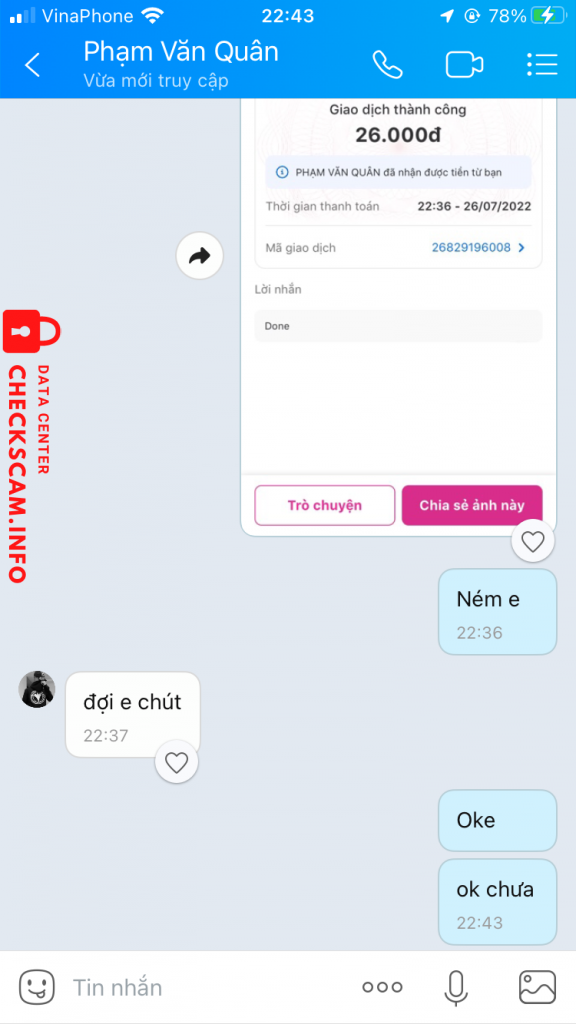 诈骗者警报: PHẠM VĂN QUÂN 已报告: November 16, 2024 诈骗者信息 全名: PHẠM VĂN QUÂN 电话号码: 0353696758 支付网关: Momo 支付账户: 0353696758 类别: 市场诈骗 来源: Checkscam 证据文件 报告描述 Anh em với nhau scam clone 2007 26k 评论 您的评论 添加评论 暂无评论。成为第一个分享您与此诈骗者经历的人。