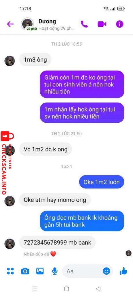 诈骗者警报: Thân Thái Dương 已报告: November 16, 2024 诈骗者信息 全名: Thân Thái Dương 电话号码: 0934315116 支付网关: MB Bank 支付账户: 7272345678999 类别: 市场诈骗 来源: Checkscam 证据文件 报告描述 Unlock 282 không đáp, không hoàn tiền, bill chuẩn 100%, đã ra ngân hàng xác minh với nhân viên. 评论 您的评论 添加评论 暂无评论。成为第一个分享您与此诈骗者经历的人。