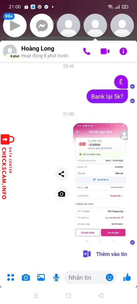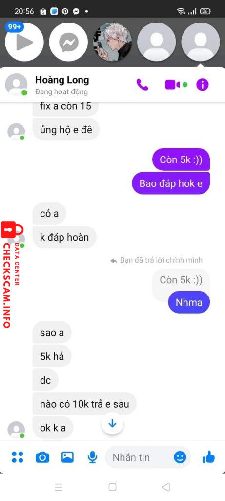 诈骗者警报: Trần Hoàng Long 已报告: November 16, 2024 诈骗者信息 全名: Trần Hoàng Long 电话号码: 0375916547 支付网关: Momo 支付账户: 0375916547 类别: 市场诈骗 来源: Checkscam 证据文件 报告描述 Lừa đảo rename acc tên dài 评论 您的评论 添加评论 暂无评论。成为第一个分享您与此诈骗者经历的人。