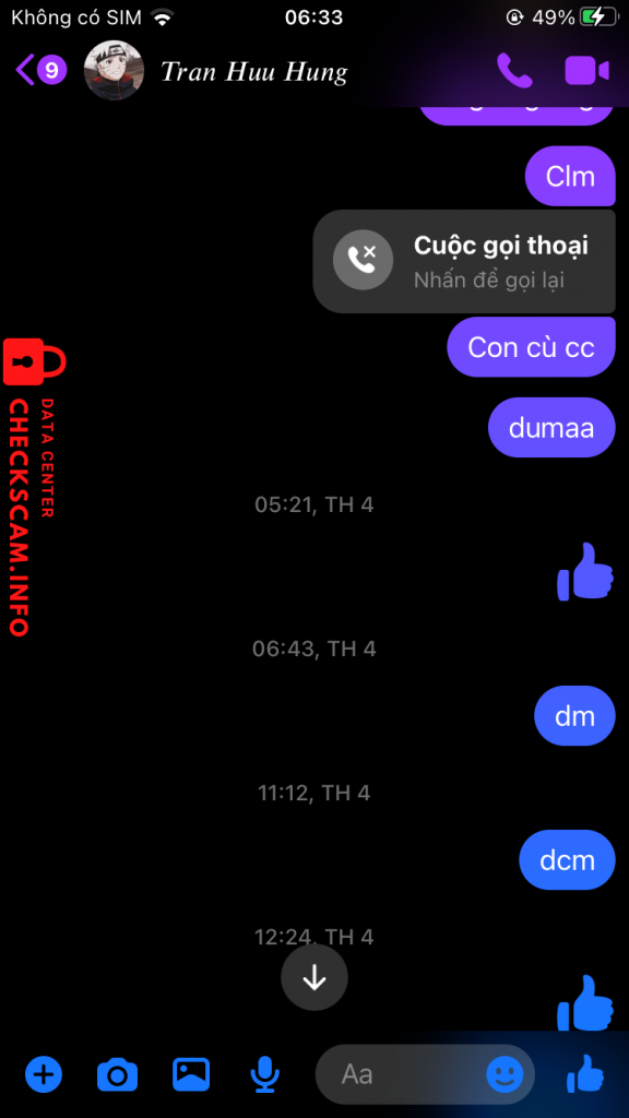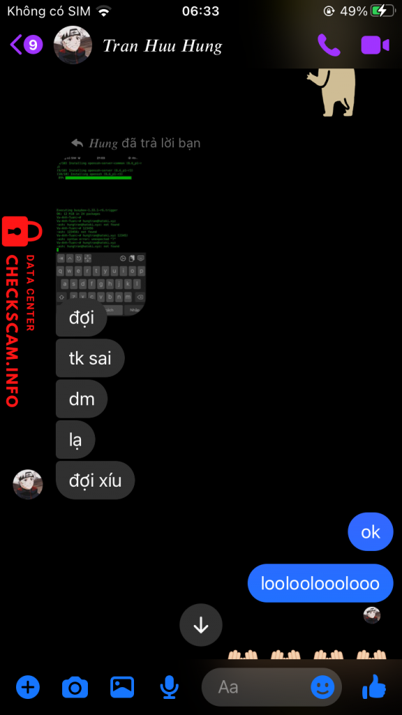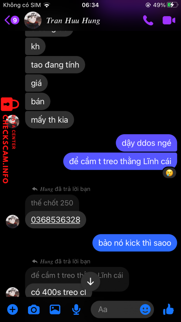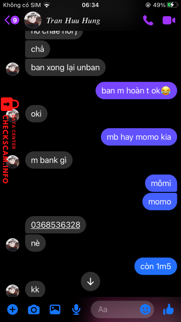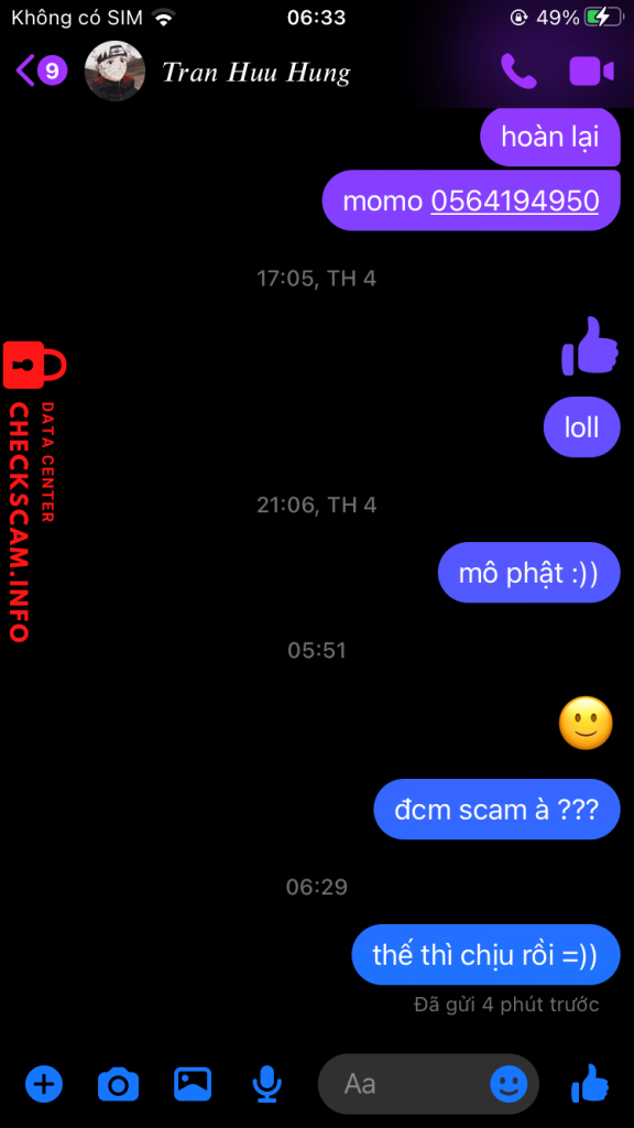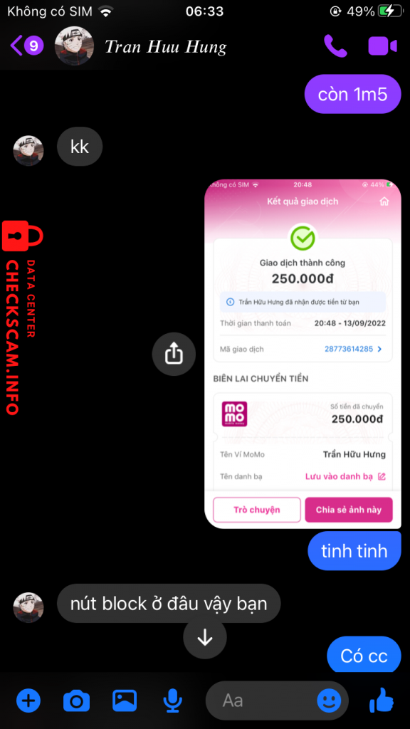 诈骗者警报: Trần Hữu Hưng 已报告: November 16, 2024 诈骗者信息 全名: Trần Hữu Hưng 电话号码: 0368536328 支付网关: Momo 支付账户: 0368536328 类别: 市场诈骗 来源: Checkscam 证据文件 报告描述 Mua hatoki v3 nhưng lúc nhập ko được scamer nói đợi tí nhưng cho đến nay vẫn chưa rep 评论 您的评论 添加评论 暂无评论。成为第一个分享您与此诈骗者经历的人。