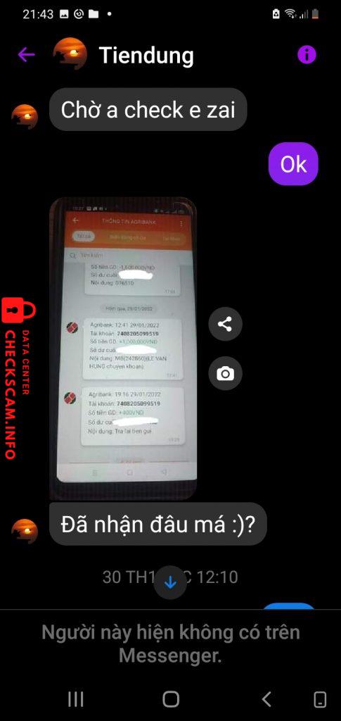 诈骗者警报: Tran Thi Ngo Diem 已报告: November 16, 2024 诈骗者信息 全名: Tran Thi Ngo Diem 支付网关: Agribank 支付账户: 7408205099519 类别: 市场诈骗 来源: Checkscam 证据文件 报告描述 Scam 400k vì dịch vụ mở khóa cp 评论 您的评论 添加评论 暂无评论。成为第一个分享您与此诈骗者经历的人。