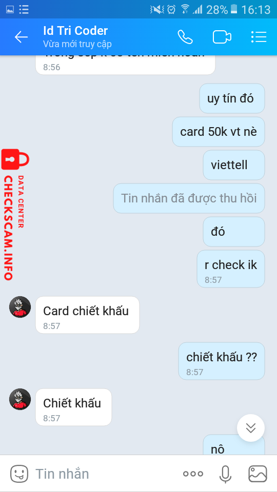 诈骗者警报: Trí Coder 已报告: November 16, 2024 诈骗者信息 全名: Trí Coder 电话号码: 0669474103 支付网关: zalopay 类别: 市场诈骗 来源: Checkscam 证据文件 报告描述 gửi tiền cho nó nó kêu là không nhận card vậy mà check lại thấy nạp lúc đó chỉ cách có 1p mà thôi 评论 您的评论 添加评论 暂无评论。成为第一个分享您与此诈骗者经历的人。