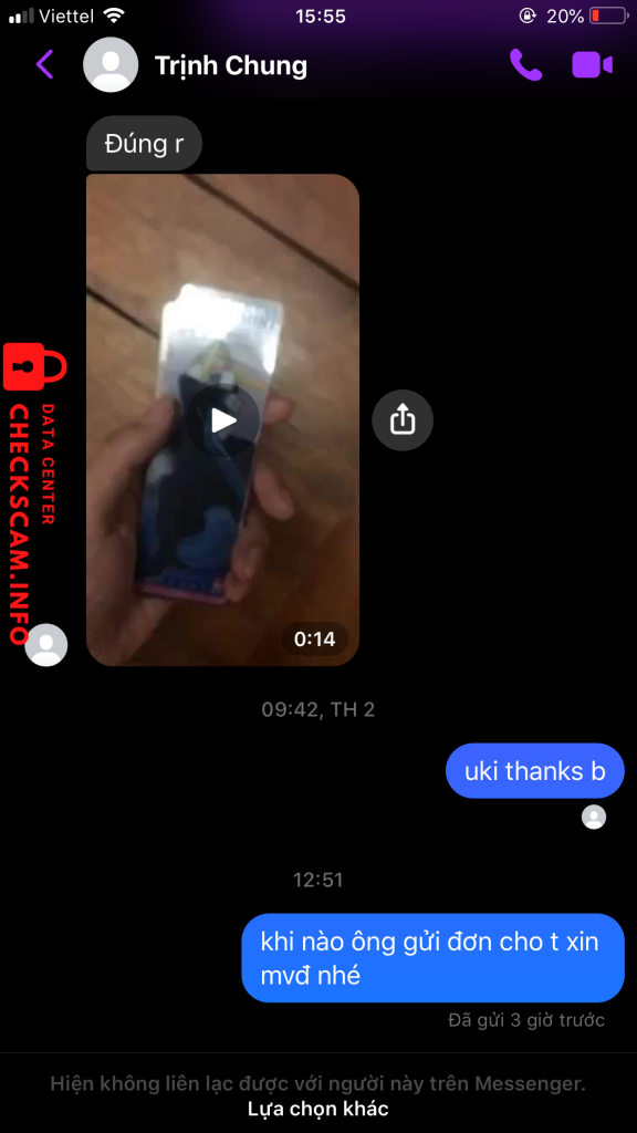 诈骗者警报: Trinh Dinh Chung 已报告: November 16, 2024 诈骗者信息 全名: Trinh Dinh Chung 支付网关: Vp Bank 支付账户: 260564048 类别: 市场诈骗 来源: Checkscam 证据文件 报告描述 Scam tiền Bookmark 评论 您的评论 添加评论 暂无评论。成为第一个分享您与此诈骗者经历的人。