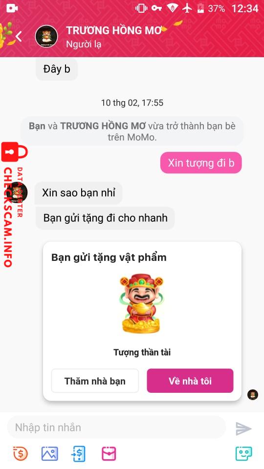 诈骗者警报: Trương Hồng Mơ 已报告: November 16, 2024 诈骗者信息 全名: Trương Hồng Mơ 电话号码: 0375715347 支付网关: Momo 支付账户: 0375715347 类别: 市场诈骗 来源: Checkscam 证据文件 报告描述 Lừa đảo mua bán vật phẩm trên Momo 评论 您的评论 添加评论 暂无评论。成为第一个分享您与此诈骗者经历的人。